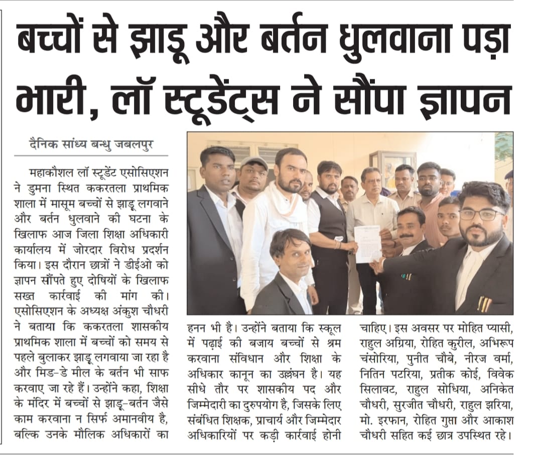 महाकौशल लॉ स्टुडेन्ट एसोसिएशन, म.प्र. (रजि. नं.: 04/14/01/23271/23) हमारे बारे में (About Us) महाकौशल लॉ स्टुडेन्ट एसोसिएशन, म.प्र., एक समर्पित संगठन है जो प्रदेश के सभी विधि छात्रों और समाज के पीड़ित वर्ग के हित में कार्य करता है। हमारा उद्देश्य छात्रों को एक मंच प्रदान करना है, जहां वे अपने अधिकारों के प्रति जागरूक हो सकें और न्यायिक प्रणाली को समझकर उसमें अपनी भूमिका निभा सकें। यह संगठन सामाजिक और सांस्कृतिक समरसता को बढ़ावा देने के साथ-साथ विधिक सहायता उपलब्ध कराने का भी कार्य करता है। हमें क्यों जॉइन करें? (Why Join Us) छात्र हित में कार्य: आपके अधिकारों की रक्षा और आपके हितों के लिए संगठन सदैव तत्पर है। विधिक सहायता: जरूरतमंद वर्ग को विधिक सलाह और सहायता प्रदान करना। मंच प्रदान करना: छात्रों के लिए विचार-विमर्श और नेतृत्व क्षमता विकसित करने का मंच। सामाजिक कार्य: जनहित और सामाजिक समरसता के लिए गतिविधियों का आयोजन। सांस्कृतिक कार्यक्रम: सांस्कृतिक और प्रेरणादायक कार्यक्रमों का हिस्सा बनें।